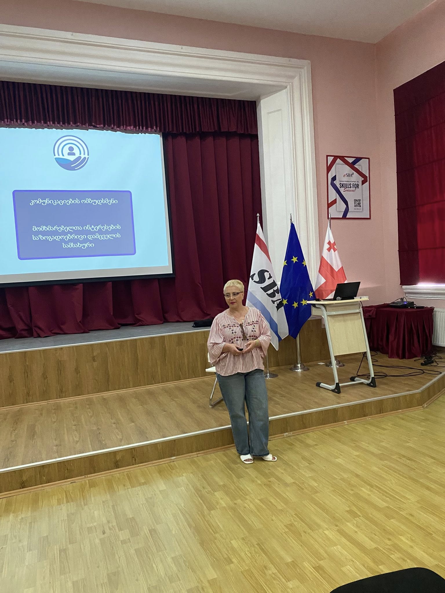 მომხმარებელთა ინტერესების საზოგადოებრივი დამცველის სამსახური საინფორმაციო კამპანიის ფარგლებში აგრძელებს შეხვედრებს. მიმდინარე წლის 12 ივნისს შეხვედრა გაიმართა პროფესიული კოლეჯის ,,საქართველოს ბიზნესის აკადემიის” სტუდენტებთან და ადმინისტრაციის თანამშრომლებთან. შეხვედრის მონაწილეები გაეცნენ სამსახურის საქმიანობას და მიიღეს ინფორმაცია კანონმდებლობით მინიჭებული უფლებების, კომპანიების ვალდებულებების, საჩივრის/განცხადების განხილვის წესების და ვადების, აგრეთვე დარგში შემავალი სხვა საკითხების შესახებ.