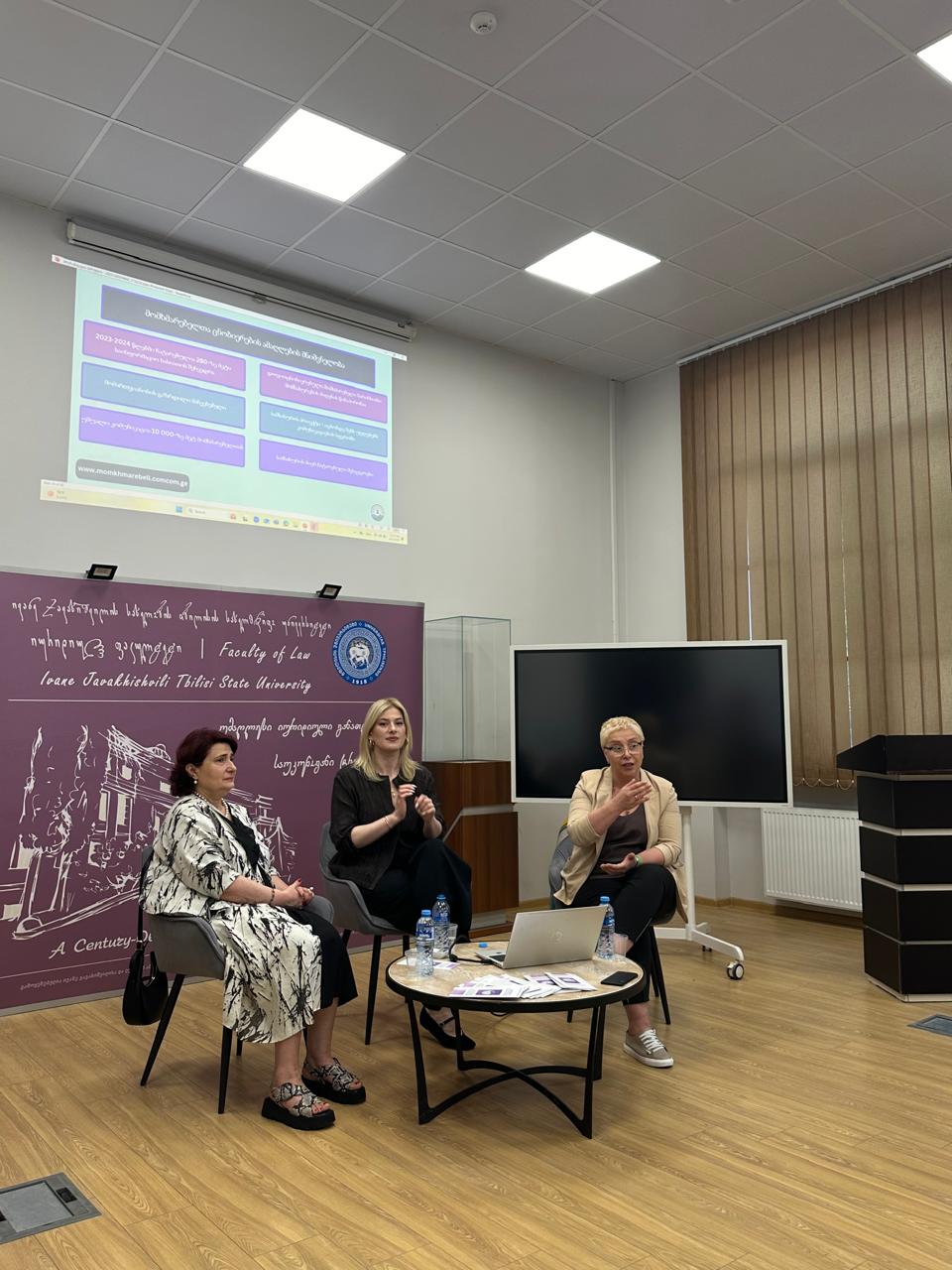 მომხმარებელთა ინტერესების საზოგადოებრივი დამცველის სამსახური საინფორმაციო კამპანიის ფარგლებში აგრძელებს შეხვედრებს. მიმდინარე წლის 11 ივნისს შეხვედრა გაიმართა ივანე ჯავახიშვილის სახელობის თბილისის სახელმწიფო უნივერსიტეტის სტუდენტებთან. შეხვედრის მონაწილეები გაეცნენ სამსახურის საქმიანობას და მიიღეს ინფორმაცია კანონმდებლობით მინიჭებული უფლებების, კომპანიების ვალდებულებების, საჩივრის/განცხადების განხილვის წესების და ვადების, აგრეთვე დარგში შემავალი სხვა საკითხების შესახებ.
