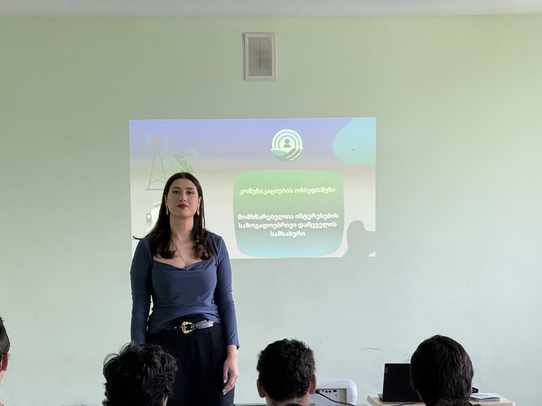 მომხმარებელთა ინტერესების საზოგადოებრივი დამცველის სამსახური საინფორმაციო კამპანიის ფარგლებში აგრძელებს შეხვედრებს. მიმდინარე წლის 20 მაისს შეხვედრა გაიმართა საქართველოს ეროვნული უნივერსიტეტის სტუდენტებთან. შეხვედრის მონაწილეები გაეცნენ სამსახურის საქმიანობას და მიიღეს ინფორმაცია კანონმდებლობით მინიჭებული უფლებების, კომპანიების ვალდებულებების, საჩივრის/განცხადების განხილვის წესების და ვადების, აგრეთვე დარგში შემავალი სხვა საკითხების შესახებ.