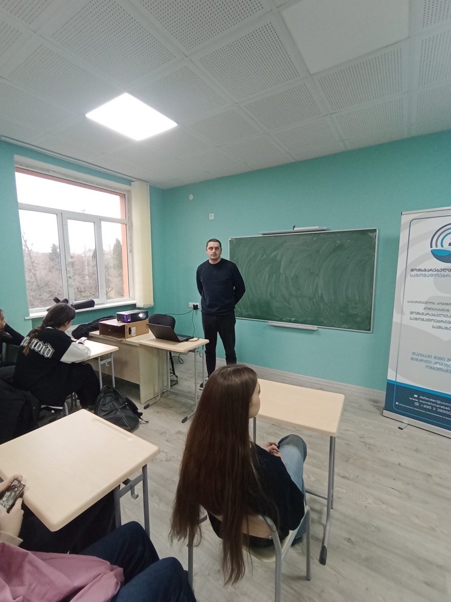 მომხმარებელთა ინტერესების საზოგადოებრივი დამცველის სამსახური, განაგრძობს საინფორმაციო ხასიათის შეხვედრებს, -“იცნობდე შენს უფლებებს კომუნიკაციების სფეროში”, საგანმანათლებლო სფეროს წარმომადგენლებთან. მიმდინარე წლის 28 ნოემბერს, სამსახურმა შეხვედრა გამართა ივანე ჯავახიშვილის სახელობის თბილისის სახელმწიფო უნივერსიტეტის და ქ. თბილისის 123-ე საჯარო სკოლის უფროსკლასელებთან და პედაგოგებთან. გვანცა ჩხეიძემ შეხვედრის მონაწილეებს წარუდგინა ინფორმაცია სამსახურის საქმიანობის შესახებ. შეხვედრის მონაწილეებს