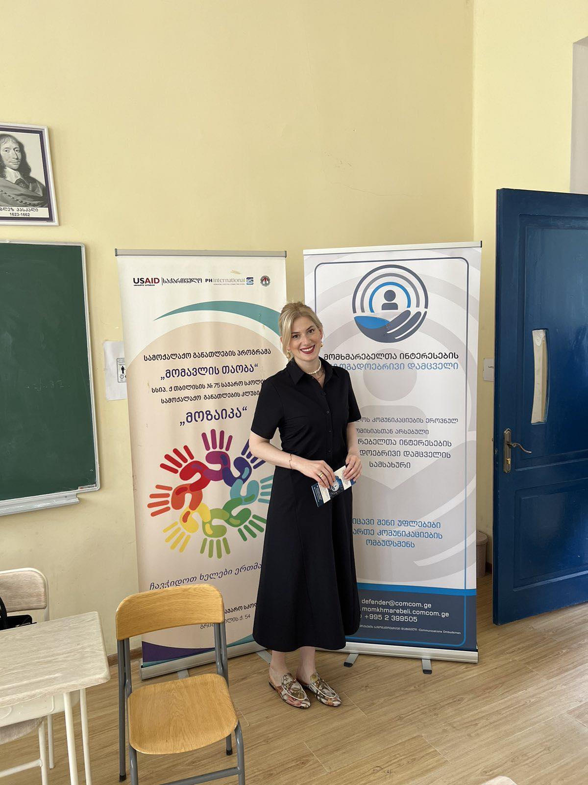 იცნობდე შენს უფლებებს კომუნიკაციების სფეროში” აქტივობის ფარგლებში, მომხმარებელთა ინტერესების საზოგადოებრივი დამცველი, მიმდინარე წლის 25 მაისს თბილისის 75-ე საჯარო სკოლას ეწვია. გვანცა ჩხეიძემ შეხვედრის მონაწილეებს წარუდგინა ინფორმაცია სამსახურის საქმიანობის შესახებ. მოსწავლეებს და პედაგოგებს გააცნო კანონმდებლობით მინიჭებული უფლებები, კომპანიების ვალდებულებები, საჩივრის/განცხადების განხილვის წესები და ვადები, აგრეთვე დარგში შემავალი სხვა საკითხები.