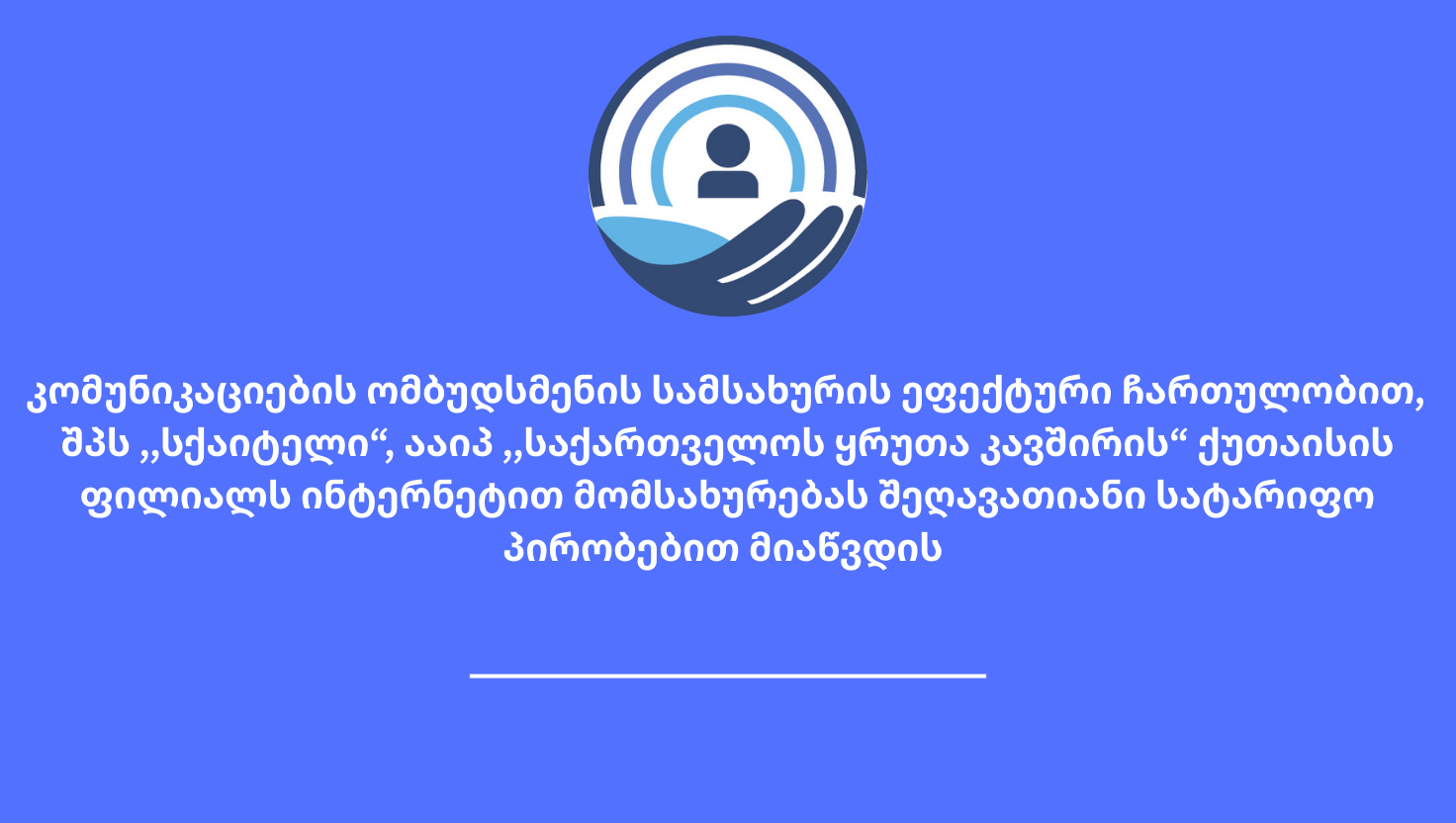 კომუნიკაციების ომბბუდსმენის სამსახურის ეფექტური ჩართულობით, შპს ,,სქაიტელი“ ააიპ ,,საქართველოს ყრუთა კავშირის“ ქუთაისის ფილიალს ინტერნეტით მომსახურებას შეღავათიანი სატარიფო პირობებით მიაწვდის